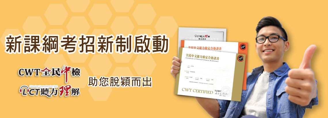 CWT全民中文能力檢定-高等 CWT全民中文能力檢定-優等 |