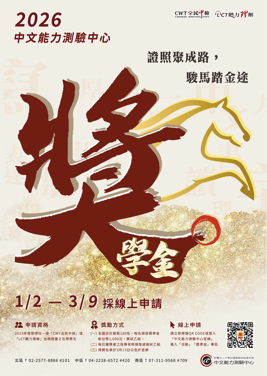 凡於2025年取得「CWT全民中檢/LCT聽力理解」,任一等級合格證書,國中以上(含國中)的在學學生,都具有獎學金申請資格唷!